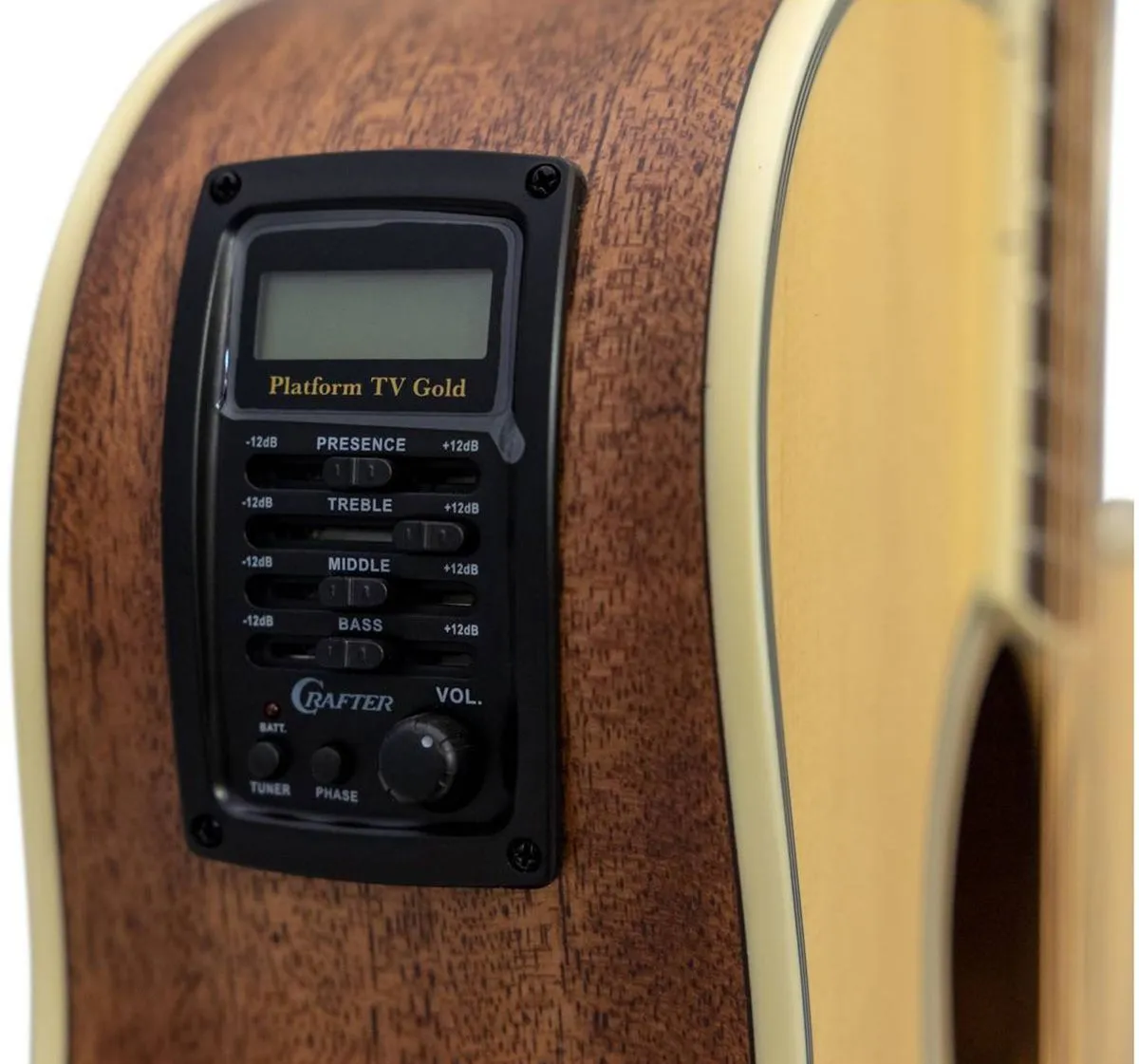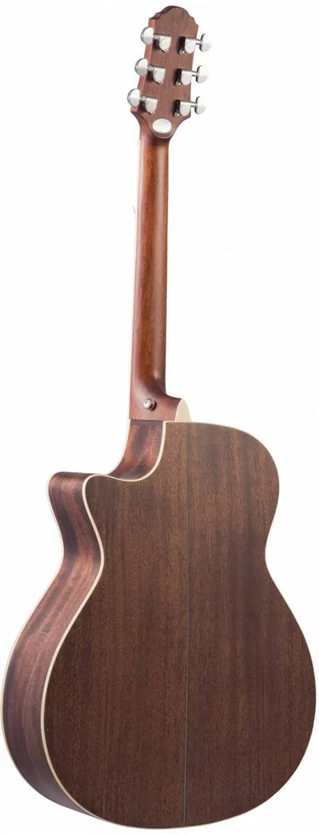 Верхняя дека Crafter GAE 6/NC выполнена из массива ситхинской ели (Sitka Spruce), одной из самых подходящих для акустических инструментов пород древесины. Благодаря её однородной и плотной структуре гитара звучит ярко и насыщенно.