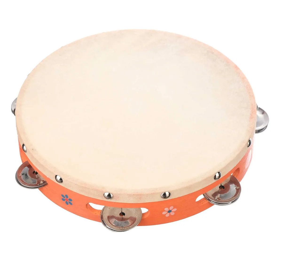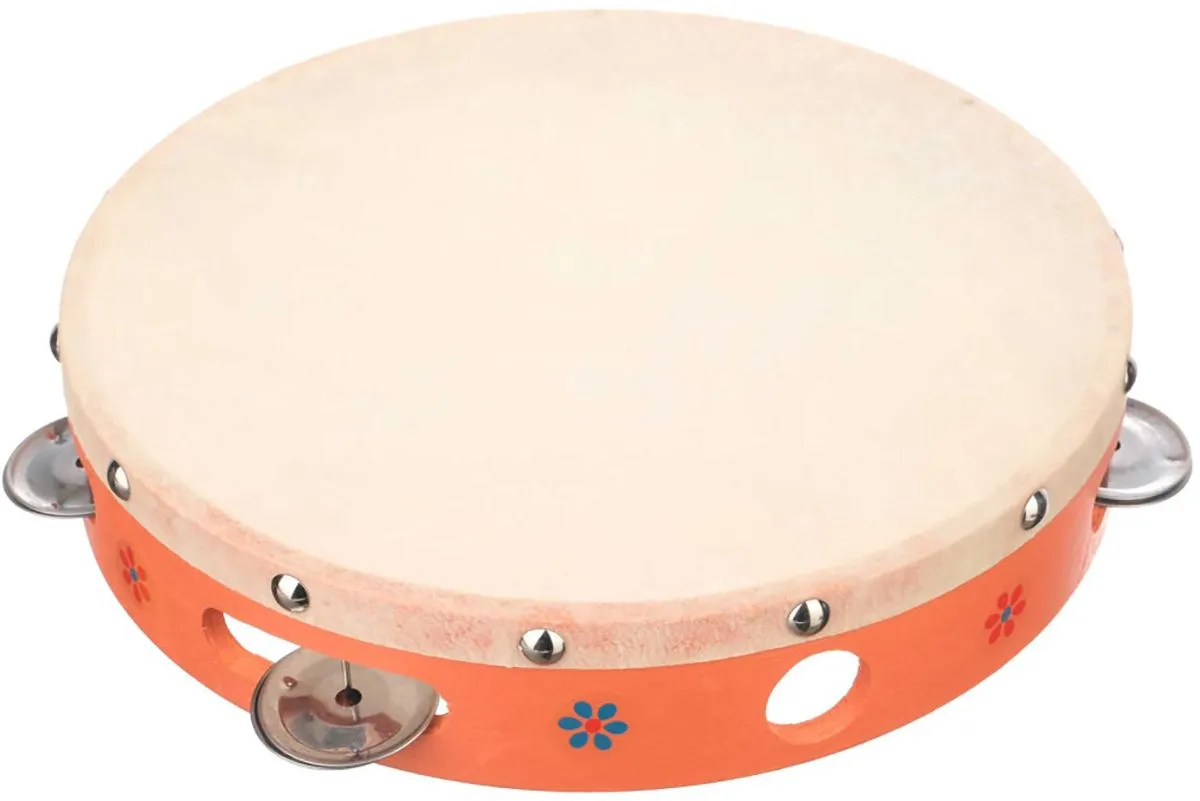 Тамбурин с кожей с 6 бубенцами в один ряд,