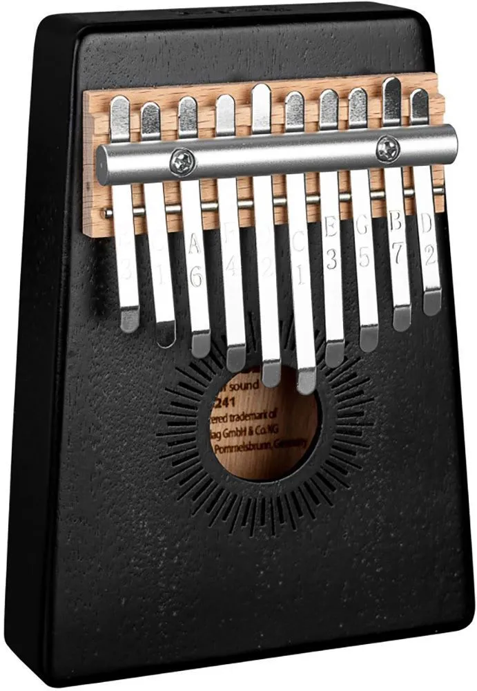 Калимба изготовлена из высококачественного красного дерева. Корпус усиливает низкие частоты и, таким образом, производит полный, чистый и теплый звук с завораживающим резонансом. Высококачественные металлические язычки настроены в до мажоре и имеют диапазон от c' - e'' (C4 - E5). Обозначение нот на язычках делают калимбу подходящей как для начинающих, так и для опытных музыкантов.