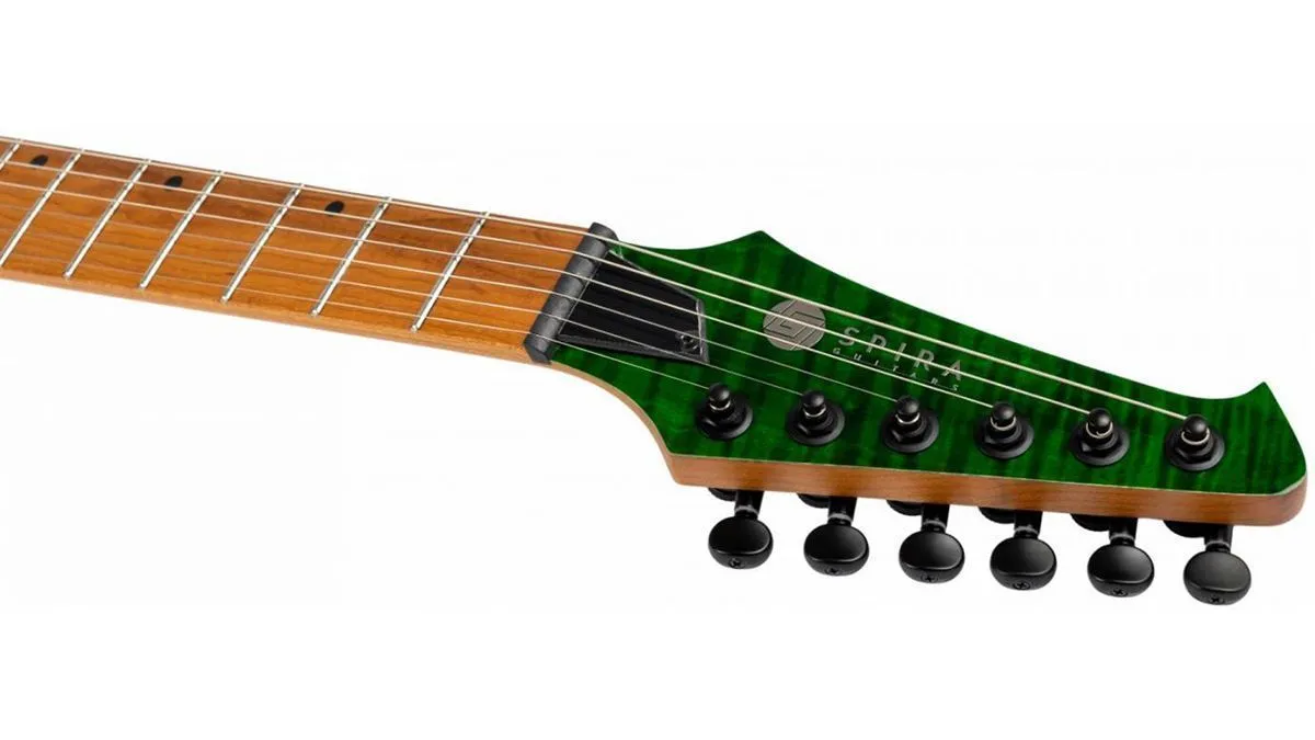 S-450 оснащена изготовленным на заказ хамбакерами Villain™ от Spira, которые обеспечивают мощные и артикулированные тона, идеально подходящие для жанров рок и метал. Фиксированный бридж и черные локовые колки обеспечивают исключительную стабильность и точность настройки.